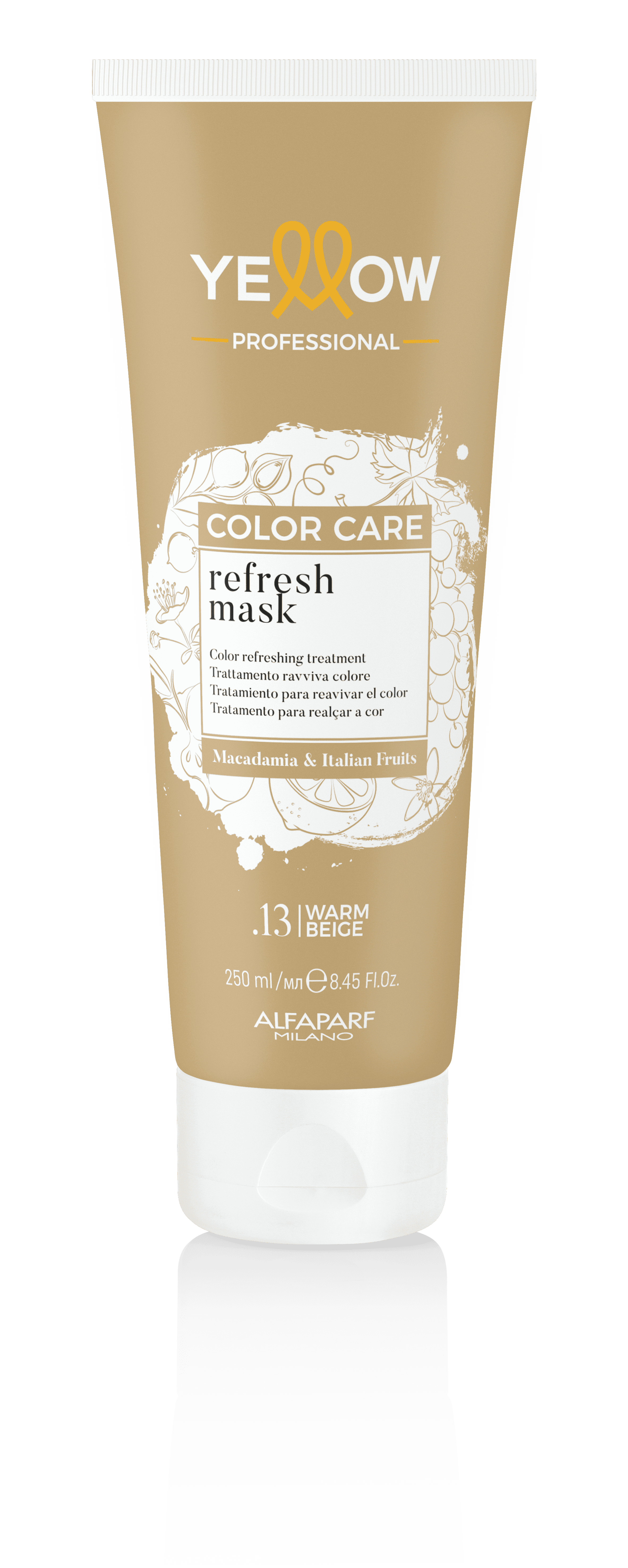 Si te cuesta mantener el color vibrante de tu cabello teñido, La mascarilla refrescante para el cuidado del color amarillo .13 es la solución que estás buscando.