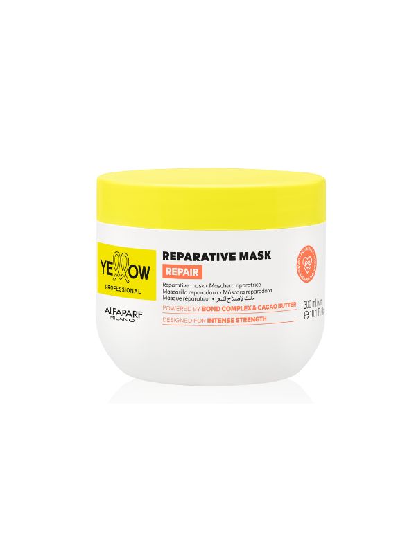 TEXTURA DENSA Mascarilla Reparadora para Cabellos Dañados Potenciada con Bond Complex y Manteca de Cacao Formulada para brindar una fuerza intensa y profunda reparación. Descripción: Mascarilla capilar de textura rica, ideal para cabellos extremadamente dañados. Su fórmula penetra en las capas más profundas de la fibra capilar, ofreciendo una reparación intensiva y restaurando la vitalidad del cabello. Modo de uso: Después de lavar con Yellow Reparative Shampoo, aplicar sobre el cabello húmedo, de medios a puntas. Dejar actuar durante 5 minutos y enjuagar completamente. Para mejores resultados, continuar con Molecular Serum.
