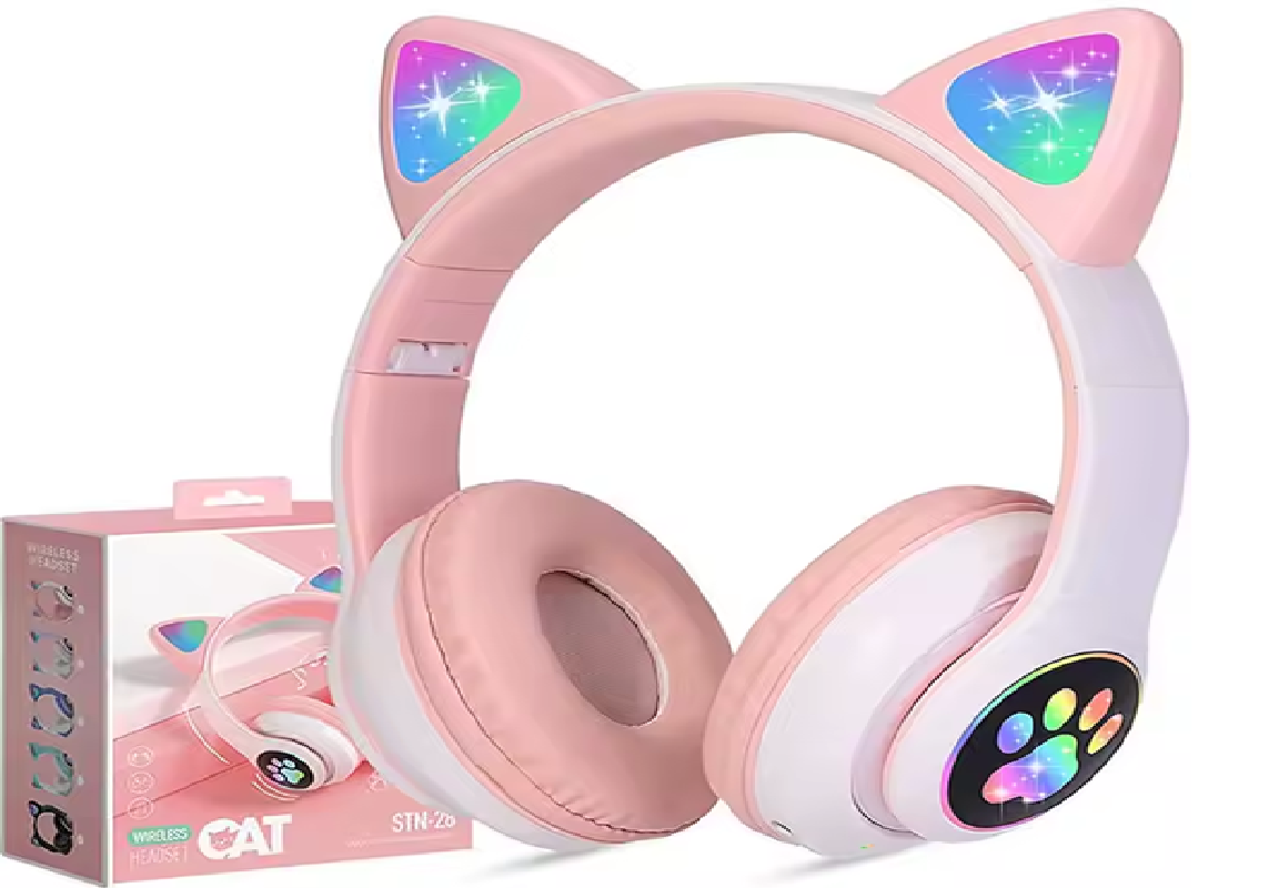 Diseñados especialmente para niños, estos auriculares TWS Cute Cat combinan entretenimiento, funcionalidad y seguridad. Su diseño tipo over-ear con orejas de gato y luces LED en 3 colores los hace visualmente atractivos y divertidos para los más pequeños.