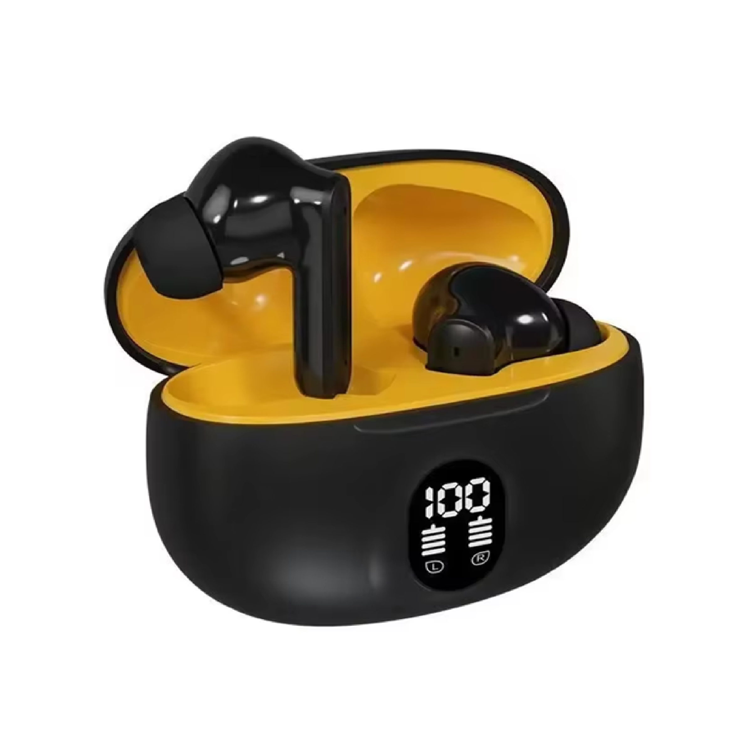 Auriculares Bluetooth TWS inalámbricos de última generación, diseñados para ofrecer sonido estéreo de alta calidad y comodidad durante el deporte o uso diario. Incluyen pantalla digital en el estuche de carga para mostrar el nivel de batería en tiempo real. Compatibles con Apple y otros dispositivos con conexión Bluetooth.